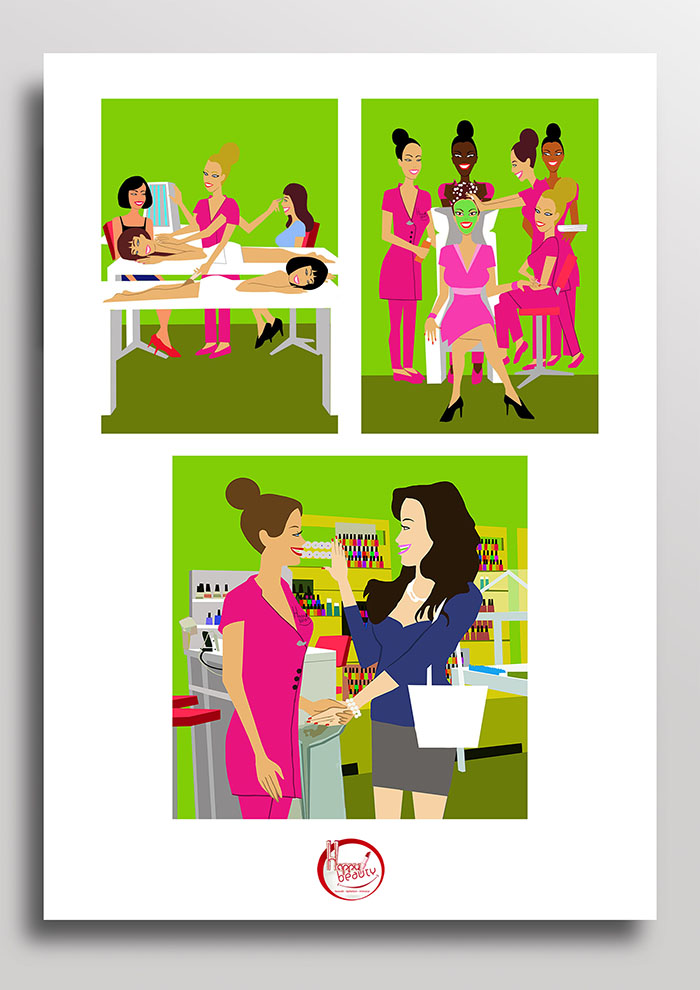 Conception d’illustrations pour le salon de beauté Happy Beauty